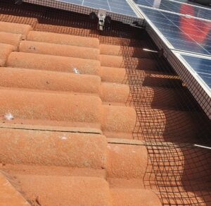 Installing bird proofing mesh prevents birds from nesting under the panels and protects the solar system from future damage.
